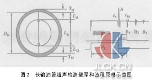 式中△tL—探頭發(fā)射脈沖到接收到A波信號的時間差 △tT—探頭接收到A波和B1的間隔 v1—超聲波在油介質(zhì)中的傳輸速度 v2—超聲波在管壁內(nèi)部的傳輸速度
