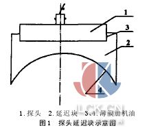 碳精棒是一種非金屬材料,在電爐煉鋼中是一種重要的消耗材料。它的晶粒粗大,分子間隙較大,表面較粗糙。其常見缺陷是氣孔,夾渣和裂紋。本文從NDT方面來探討其檢測方法和探傷工藝。根據(jù)無損檢測的理論基礎(chǔ)可知:渦流探傷、磁粉探傷、滲透探傷均不適合對碳精棒進(jìn)行檢測,而使用X射線,因碳精主要成分是碳元素,它對X射線吸收系數(shù)極小,易產(chǎn)生康普頓散射,又因其晶粒粗,分子間隙大,缺陷在底片上的靈敏度極低,所以漏檢率很高,也不適合對其檢驗(yàn)。 根據(jù)碳精棒的特點(diǎn),從超聲波理論和石墨碳衰減的頻率特性曲線可知,只要解決了設(shè)備問題、超聲波在傳播過程中的衰減問題和超聲波探傷的耦合問題,使用超聲波檢測碳棒是完全可行的。 1設(shè)備及材料 ● 100 50碳精棒 ●CTS-25型非金屬超探儀 ●探頭三種:50KC-28100KC-40250KC-40 ●耦合方式:高致密度薄膜、機(jī)油、甘油 ●環(huán)氧樹脂和乙二胺制作的延遲塊 2實(shí)驗(yàn)方法 2.1延遲塊 因使用探頭直徑較大,材料曲率較大,探頭與棒材直接接觸面較小,聲能損失較多,易激發(fā)表面復(fù)型波,使用延遲塊可以大大縮減近場區(qū),使聲能較集中,同時避免變形波。如圖1。 50KC-28h=λ/2=29 mm 100KC-40h=λ/2=14.5 mm 250KC-40h=λ/2=5.8 mm 當(dāng)h=nλ/2時,超聲波的透過率最大。