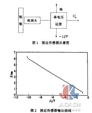 1引言 位移的測量在工業(yè)生產(chǎn)中被大量采用,而且在許多場合是非常必要的。電磁振動臺是一種以磁場能為媒介,可以實現(xiàn)由電能到機(jī)械能轉(zhuǎn)換的大功率換能 器。在控制系統(tǒng)控制下,超大功率放大器驅(qū)動振動臺工作,振動臺可以產(chǎn)生位移范圍達(dá)51mm,頻率從5一300Hz的正弦振動,并且其推動力可以達(dá)數(shù)噸。因 此電磁振動臺在國防工業(yè)、航空航天工業(yè)振動環(huán)境試驗中得到了廣泛的應(yīng)用。然而,電磁振動臺在圍繞臺面中心作大位移快速振動實驗時,由于機(jī)械設(shè)計或其它偶然 因素的影響,臺面經(jīng)常偏離中心,如果偏心嚴(yán)重,則會損壞振動臺上試驗品和振動臺本身,造成重大經(jīng)濟(jì)損失。針對這一問題,國際和國內(nèi)采用了各種各樣的對中方 法,有機(jī)械的,有激光的,有充放氣的,但效果并不理想。針對電磁振動臺中的這一問題,本文發(fā)展了一種新型的大位移測量方法,并將這一方法應(yīng)用到國產(chǎn)電磁振 動臺的自動對中調(diào)節(jié)中,成功地在國內(nèi)首次從技術(shù)上解決了電磁振動臺的電對中問題,擴(kuò)大了電磁振動系統(tǒng)的有效位移長度。 2新型大位移測量原理 基于電渦流效應(yīng)的接近傳感器在國內(nèi)外大量采用,它的原理是:當(dāng)渦流線圈接近金屬導(dǎo)體時,線圈電感會發(fā)生變化,由這一原理,制成了各種各樣的接近傳感器。理論分析與實踐證明,在幾毫米的微小距離內(nèi),經(jīng)過精心的設(shè)計與加工,可以制作出線性非常優(yōu)越的接近傳感器。 圖1是接近傳感器示意圖,它由電渦流頭和放大器兩部分組成,該放大器應(yīng)加入負(fù)電源。當(dāng)電渦流頭與金屬鋁板之間的距離在0.5二6~之間線性變化時,輸出電壓在一0.84一一10V之間線性變化,圖2為在工廠實測數(shù)據(jù)示意圖,縱坐標(biāo)為距離,橫坐標(biāo)為輸出電壓。