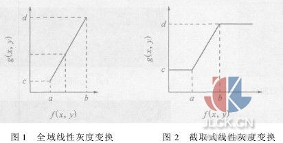 可用下述變換來實(shí)現(xiàn)全域線性灰度變換(圖1)