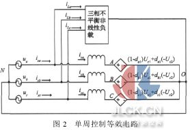 引言 靜止無(wú)功發(fā)生器(static var generator縮寫(xiě)為SVG,又稱(chēng)STATCOM)是柔性交流輸電(flexible AC transmissionsystem,縮寫(xiě)為FACTS)系統(tǒng)中重要的電力電子裝置,是用于無(wú)功補(bǔ)償、平衡接入點(diǎn)電壓的有效手段之一。在電力工業(yè)中,由于三相四線(xiàn)制系統(tǒng)在工廠供電、民用住宅和城市供電等電力系統(tǒng)中廣泛應(yīng)用,其中的零線(xiàn)電流、無(wú)功功率和三相不平衡問(wèn)題越來(lái)越引起人們的重視,而三相四線(xiàn)制SVG可以對(duì)以上情況進(jìn)行有效的補(bǔ)償。隨著SVG在這一領(lǐng)域的逐漸發(fā)展,它的控制方法已成為近年來(lái)國(guó)內(nèi)外研究的熱點(diǎn)。目前SVG的控制主要從控制策略和外閉環(huán)反饋控制量的選取兩方面來(lái)考慮,可以分為電流間接控制和電流直接控制。單周控制(one-cycle control,縮寫(xiě)為OCC)法作為一種非線(xiàn)性控制方法,最早由美國(guó)學(xué)者Keyue Ma Smedley和Slobodan Cuk提出[1],在近年來(lái)的研究中,單周控制理論已經(jīng)在DC-DC變換、功率因數(shù)校正和開(kāi)關(guān)變換器中得到了成功應(yīng)用,文獻(xiàn)[2]首先提出可以把OCC應(yīng)用到APF中。目前,OCC已被應(yīng)用到單相和三相APF中,并獲得了一系列的改進(jìn)[3-5]。本文提出一種單周控制的三相四線(xiàn)制SVG,經(jīng)理論分析和仿真結(jié)果證實(shí),該方案能有效地補(bǔ)償三相四線(xiàn)制系統(tǒng)中的零線(xiàn)電流、無(wú)功功率,解決三相不平衡問(wèn)題,從而提高輸電線(xiàn)功率因數(shù)和傳輸效率。 1單周控制的三相四線(xiàn)制靜止無(wú)功發(fā)生器 單周控制的基本原理是保持開(kāi)關(guān)器件的開(kāi)關(guān)頻率,通過(guò)控制開(kāi)關(guān)占空比,使每個(gè)周期內(nèi)開(kāi)關(guān)變量的平均值與控制參考信號(hào)相等或成一定比例,從而消除穩(wěn)態(tài)和瞬態(tài)誤差。根據(jù)單周控制的調(diào)制方法,單周控制分為單極性調(diào)制和雙極性調(diào)制,本文討論的方法采用雙極性調(diào)制。單周控制靜止無(wú)功發(fā)生器的控制目標(biāo)是補(bǔ)償無(wú)功功率、調(diào)節(jié)功率因數(shù)接近于1,因此當(dāng)靜止無(wú)功發(fā)生器有效工作時(shí),控制SVG功率開(kāi)關(guān)的占空比,使電網(wǎng)側(cè)電流波形跟蹤電壓波形,這樣從電源側(cè)看SVG與非線(xiàn)性負(fù)載并聯(lián)以后的等效電路,在穩(wěn)態(tài)時(shí)可視為一個(gè)等效的線(xiàn)性電阻負(fù)載,即
