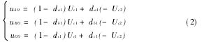 設(shè)系統(tǒng)電壓對(duì)稱(chēng),器件的開(kāi)關(guān)頻率遠(yuǎn)大于系統(tǒng)頻率,在一個(gè)開(kāi)關(guān)周期內(nèi),A,B,C點(diǎn)對(duì)逆變橋“O”點(diǎn)的電壓可以寫(xiě)為: