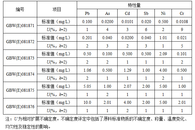 GBW(E)081871、GBW(E)081872、GBW(E)081873、GBW(E)081874、GBW(E)081875、GBW(E)081876