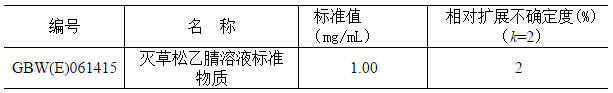GBW(E)061415?滅草松乙腈溶液標(biāo)準(zhǔn)物質(zhì) 主要用于環(huán)境、食品等領(lǐng)域相應(yīng)農(nóng)藥成分殘留檢測(cè),農(nóng)藥生產(chǎn)部門(mén)和檢測(cè)實(shí)驗(yàn)室質(zhì)量控制、分析儀器檢定/校準(zhǔn)、分析方法確認(rèn)評(píng)價(jià)等。