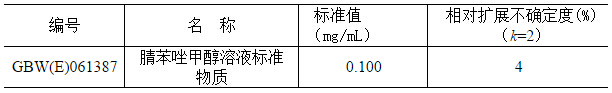 GBW(E)061387?腈苯唑甲醇溶液標(biāo)準(zhǔn)物質(zhì) 主要用于環(huán)境、食品等領(lǐng)域相應(yīng)農(nóng)藥成分殘留檢測(cè),農(nóng)藥生產(chǎn)部門(mén)和檢測(cè)實(shí)驗(yàn)室質(zhì)量控制、分析儀器檢定/校準(zhǔn)、分析方法確認(rèn)評(píng)價(jià)等。