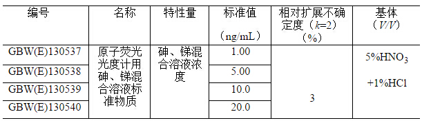 GBW(E)130537、GBW(E)130538、GBW(E)130539、GBW(E)130540?原子熒光光度計用砷、銻混合溶液標準物質(zhì)