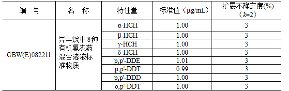 GBW(E)082211? ??異辛烷中8種有機(jī)氯農(nóng)藥混合溶液標(biāo)準(zhǔn)物質(zhì)